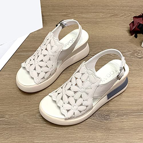 Sandali estivi da donna con plateau e zeppa Sandali comodi in pelle Zeppe aperte Ciabatte Donne Estive (Beige, 36)