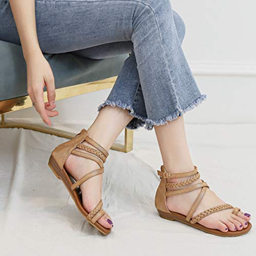 Sandali Gladiatore Donna Tinta Unita Punta Aperta con Cerniera sul Retro Piatto Sandali Casual Leggeri con Cinturino alla Caviglia Antiscivolo