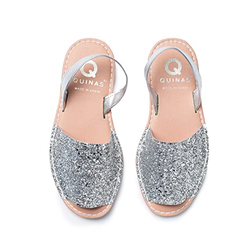 Sandali Menorchine Donna Quine Glitter Argento Soletta Imbotti, argento, 39 EU