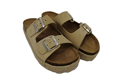 Sandali in pelle con plateau da 5 cm. Pianta Bio con 2 corde di iuta. Prodotto in Spagna. Beige Size: 37 EU