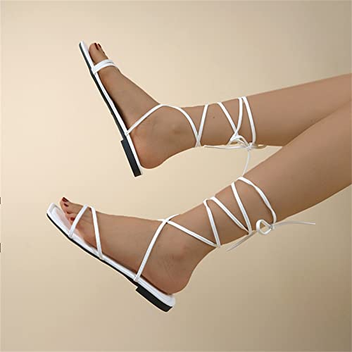 Sandali da spiaggia piatti con cinturino anello aperto in tinta unita da donna alla moda Ciabatte Estive in (White, 38)