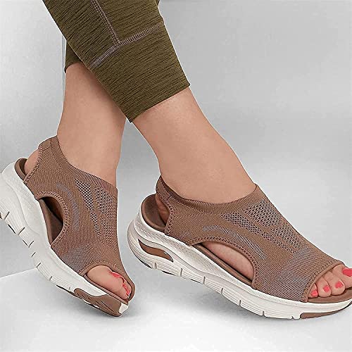 Sandali Sportivi Casual da Donna, Scarpe a Bocca di Pesce tessute con Fondo Piatto da Donna, Scarpe da Spiaggia con Suola Morbida in Mesh Traspirante (Pink, 38)