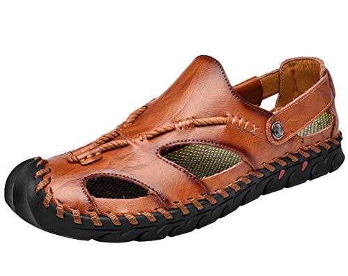Sandali Trekking Uomo Impermeabile Pelle All'aperto Antiscivolo Traspirante Punta-Chiusa Estate Spiaggia Passeggio Flessibile Casuale Sandali Sportivi Marrone 38 EU