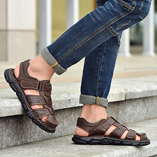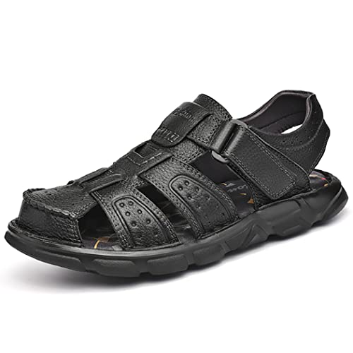 Sandali da Uomo Estivi Moda Sandali da Uomo Scarpe da Uomo in Vera Pelle Traspirante Sandali da Esterno Estivi Sandali da Spiaggia da Uomo,Nero,39 EU