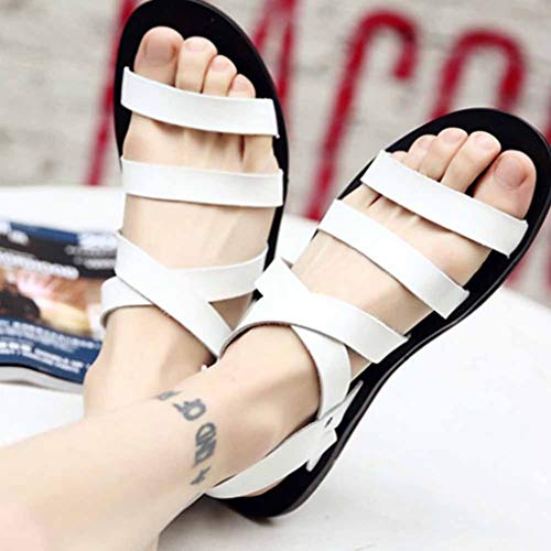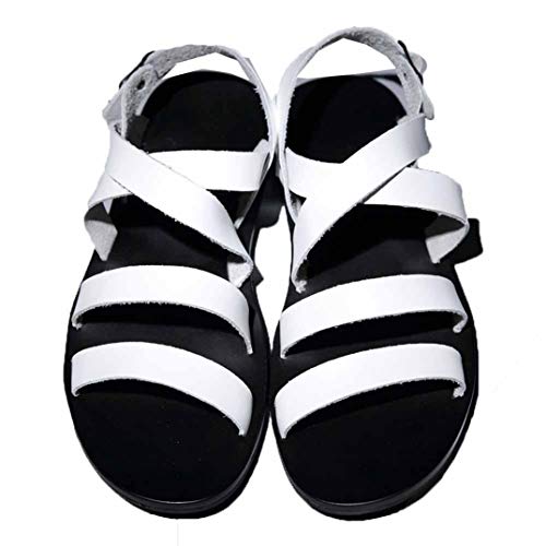 Sandali da Uomo Gladiatore conciso Moda Tinta Unita Cinturino in Pelle Fibbia Sandali da Spiaggia Casual Sandali Estivi Leggeri Peep Toe per Uomo