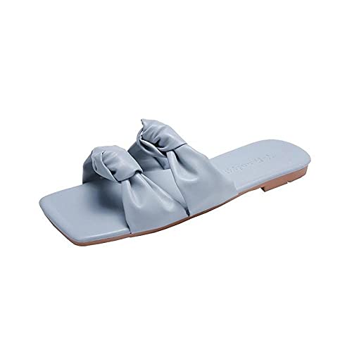 Sandali Con Zeppa Donnapantofole Donna Caramelle Colori Punta Quadrata Piatta Casual Scivolo Donna Estate Spiaggia Infradito-Blu_10