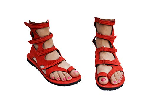 Sandalias para Mujer Bollywood Vacaciones nella Playa Hippie Fiesta Etnica romanos Otoño Sandali Yoga Primavera Verano Niñas medievales con Cordones Sandali Unisex (39, halfready Red)
