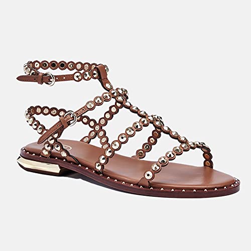 ASH Sandalo Pamela Donna in Pelle Estivo con Decorazioni Tacco Basso 2 Cm color Cuoio (numeric_39)