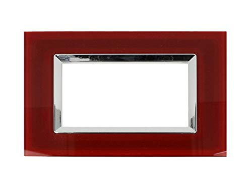 SANDASDON Placca Plexi 4M Con 4 Moduli Posti Plexiglass Lucido Effetto Vetro Cristallo Compatibile Con Bticino Living (Rosso Pompeiano)