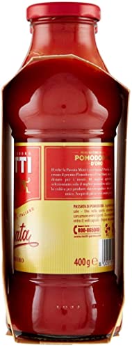 La Passata di Pomodoro Mutti è ottenuta dai pomodori più rossi e maturi, raccolti al loro apice in estate e lavorati immediatamente con cura e abilità per ottenere una purea liscia e cremosa priva di bucce e semi con un'invitante dolcezza.