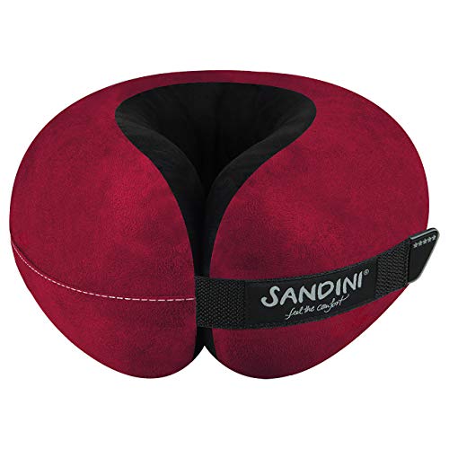 SANDINI TravelFix Regular Size - Cuscino da viaggio premium con chiusura/cuscino per il collo con funzione di supporto ergonomico - Borsa da trasporto gratuita con clip di fissaggio
