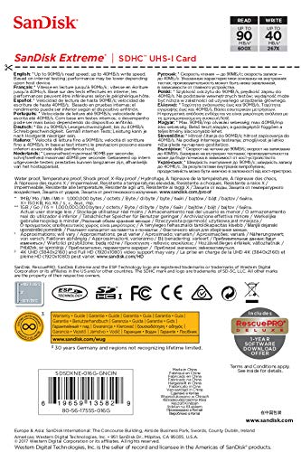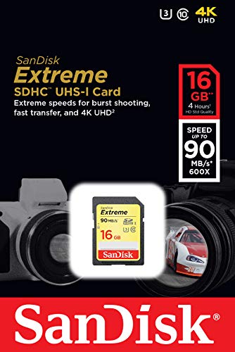 SanDisk Extreme Scheda di Memoria, SDHC da 16 GB, fino a 90 MB/sec, Classe 10, U3, V30