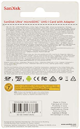 Sandisk Ultra microSDXC UHS-I 64GB 64GB MicroSDXC UHS-I Class 10 memory card - memory cards (64 GB, MicroSDXC, Class 10, 48 MB/s, UHS-I, Grey, White)