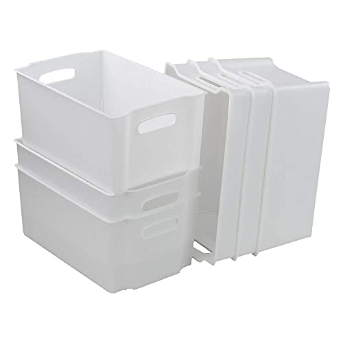Sandmovie Cestini Cassette Portaoggetti Impilabili in Plastica Senza Coperchio, Colore Bianco, 6 Confezioni