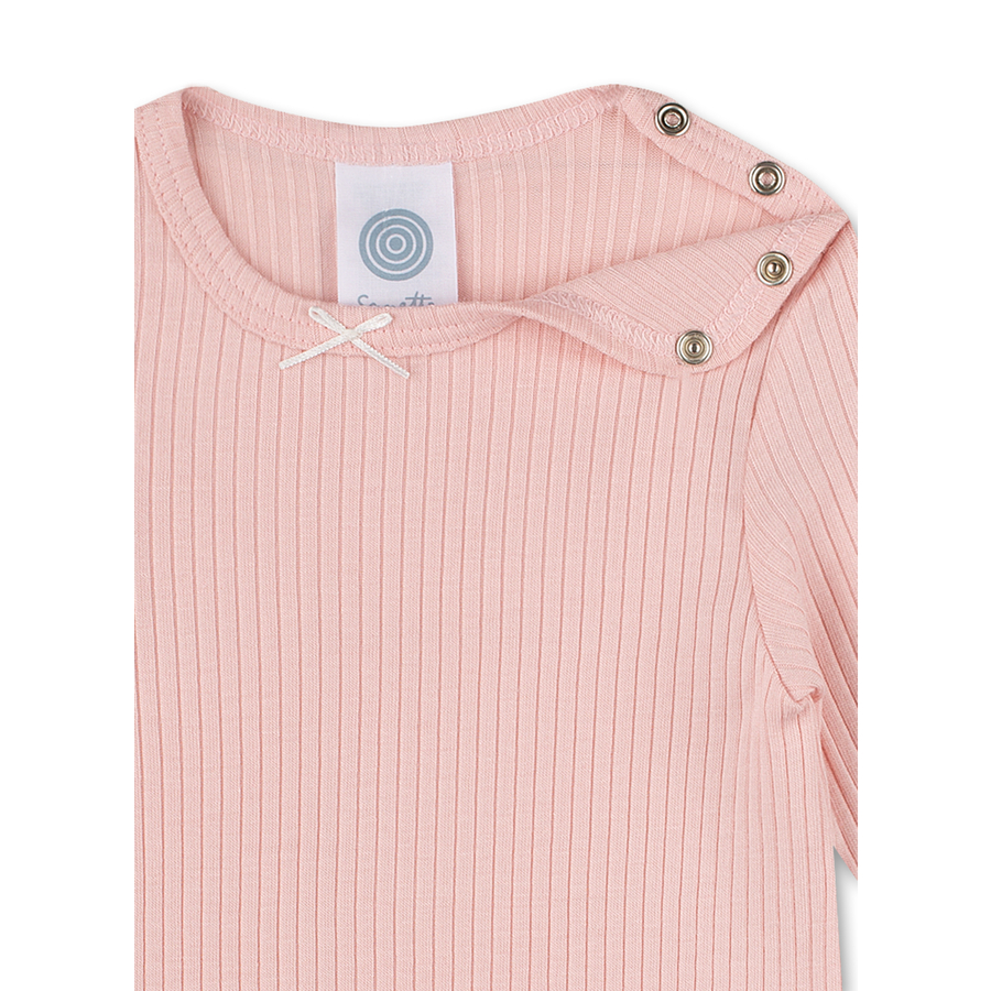 Dettagli del prodotto: Body a maniche lunghe in tinta unita Design tessuto a coste con fiocco sottile Con bottoni a pressione sulla spalla e sul cavallo Materiale e cura: Materiale: 68 % viscosa, 28 % cotone, 4 % elastan Lavabile fino a 40° C Asciugare in asciugatrice Non candeggiare Non lavare a secco