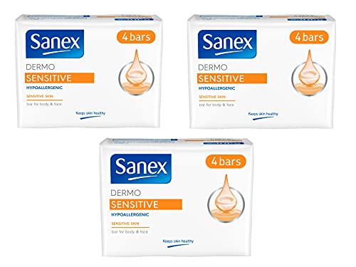 Sanex, saponette Dermo Sensitive, 90 g cad., per la pelle sensibile di corpo e viso, 12 pezzi