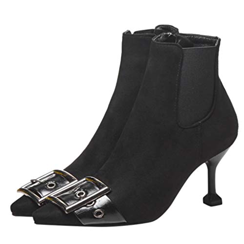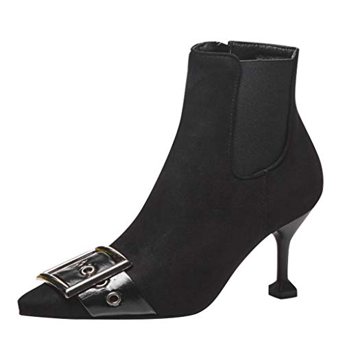 SANFASHION Chelsea - Stivaletti da donna con tacco alto, con fibbia e chiusura laterale in velluto, stile retrò, con tacco alto, A nero, 40 EU
