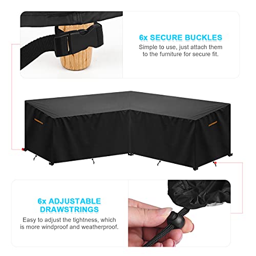 SanGlory Copertura per Mobili da Giardino a Forma di V, Impermeabile Copertura Divano a Forma di L, Copridivano da Esterno, Coperture per Divani da Giardino, Anti-vento, Anti-UV, 216x216x85/80cm