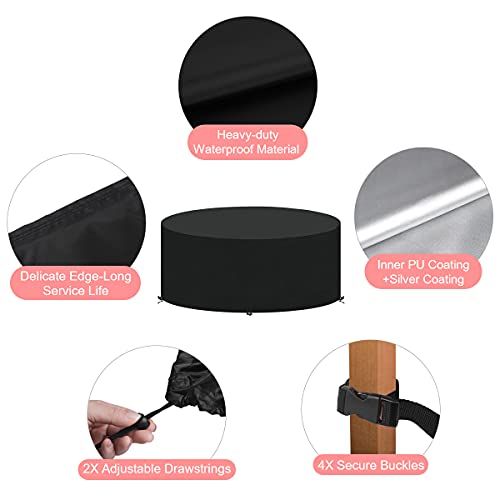 ►【Copertura circolare per mobili da giardino】Dimensione rotonda (220x71cm /86.61 * 27.95inch), che può essere utilizzato per tutti i tipi di mobili da interno o esterno in forma rotonda, come tavolo rotondo da patio, griglia rotonda, tavolino da caffè, set da pranzo rotondo, mobili in rattan o mobili di forma ovale. Si prega di misurare i mobili prima dell'acquisto.