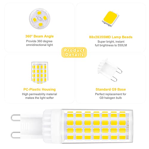 ☀【LED G9 a risparmio energetico】Basso consumo energetico e alta luminosità. Con un consumo di 5W, questa lampadina G9 LED sostituisce una lampadina a incandescenza da 30-50 Watt, con un risparmio energetico fino al 90% rispetto alle lampadine tradizionali.
