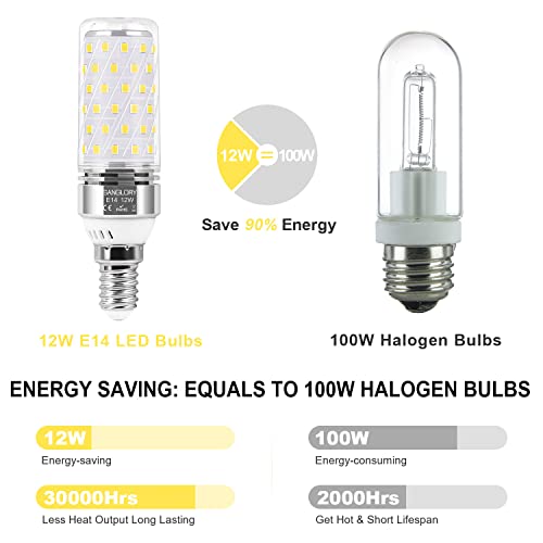 SanGlory Lampadina LED E14 12W 6000K Equivalenti a 100W 1350 Lumens Alta Luminosità e Risparmio Energetico Non Dimmerabile Lampade LED E14 Luce Bianco Freddo