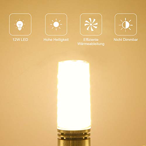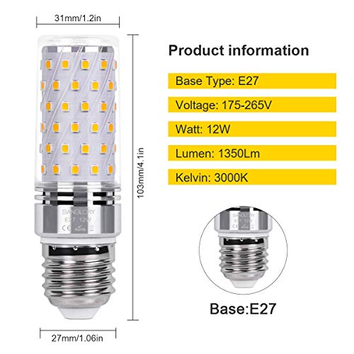 SanGlory Lampadina LED E27 Bianco Caldo, 12W E27 Lampadine Mais 3000K, Equivalenti a 100W Lampada Alogena, Angolo 360°, AC 175-265V, Nessun Sfarfallio, Non Dimmerabile, Pacco da 4