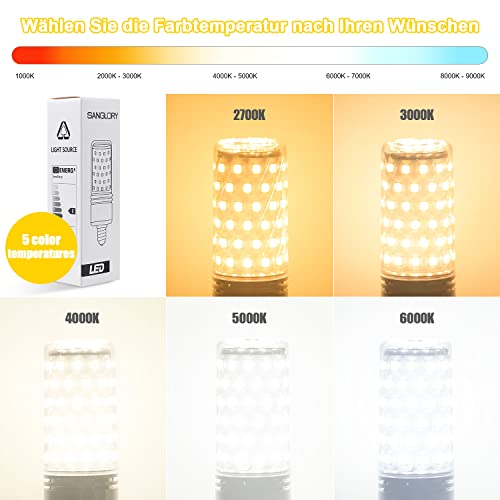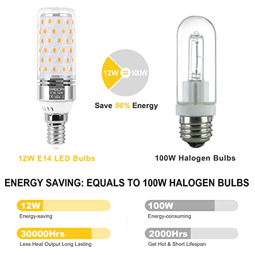 SanGlory E14 LED Lampadine 12W Equivalente a Alogeno 100W, 1350LM, Bianco Caldo 2700K, E14 Mais lampade Non Dimmerabile Lampadine a Candela, Pacco da 4(12W E14 2700K)