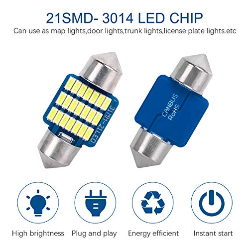 SanGlory 6 Pezzi 31mm C5W LED Lampadine Canbus No Errore LED Festone, 21 x 3014 SMD LED Bulbi per Luci Plafoniera, Targa, Lampade Interni Bianca Fredda 6000K, 12V (31mm)