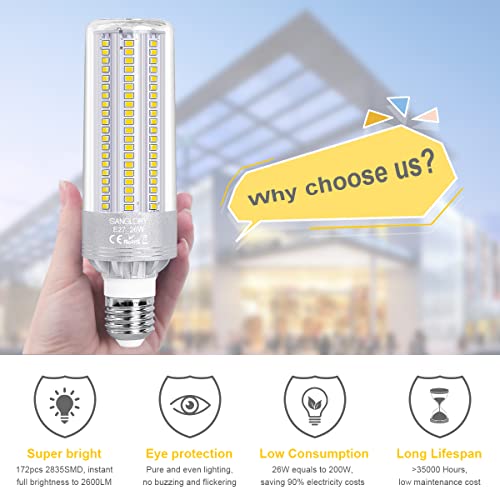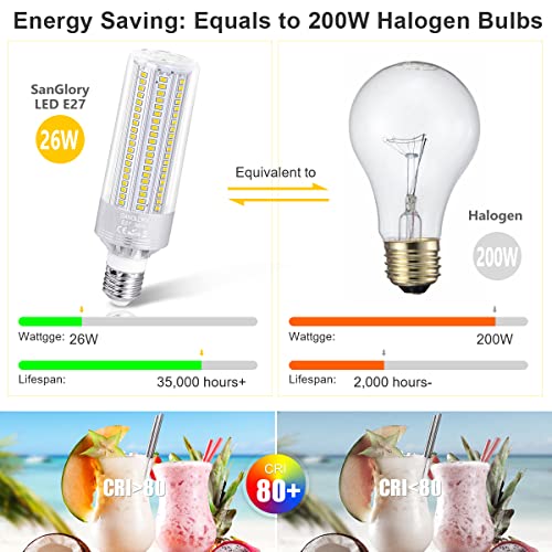 SanGlory 2 Pezzi Lampadina LED E27 26W equivalenti a 200W Incandescenza, 2600 Lumen, Lampada LED Mais E27 a Vite Edison, Luce Bianca Naturale 4000K, Nessun Sfarfallio, Non Dimmerabili