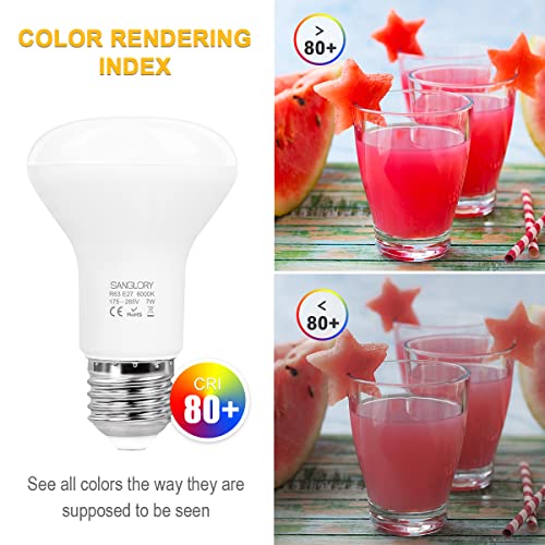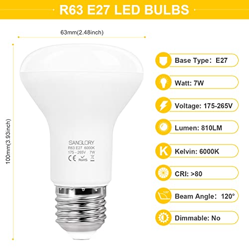 SanGlory 6 Pezzi LED Lampadine Faretti R63 E27 7W Equivalente a Alogena E27 60W, Luce fredda 6000K, 810LM, 120 Gradi di Luce, Lampade Riflettore LED R63 per Plafoniere, Non-dimmerabile (Freddo 6000K)