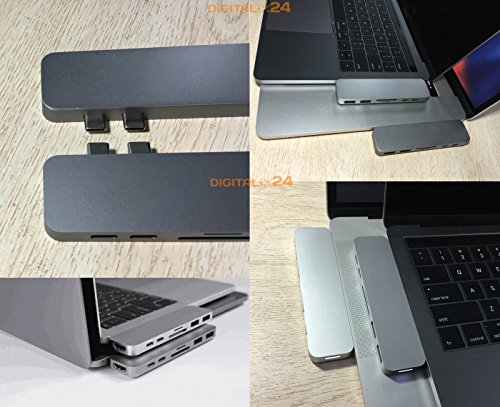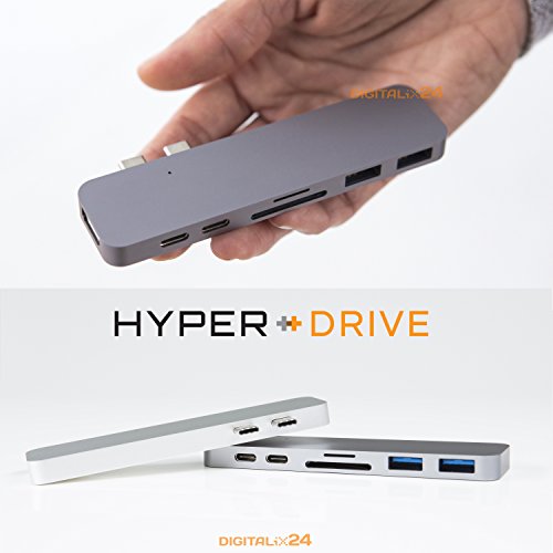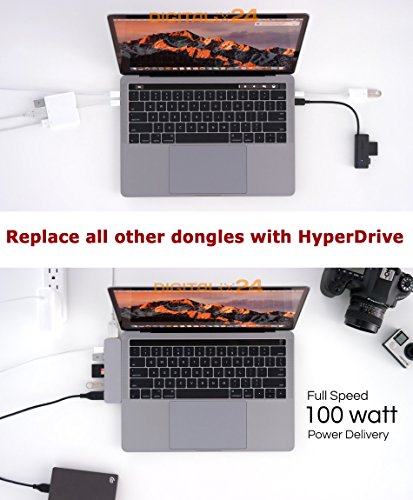 The combination of two Thunderbolt 3 ports provides significantly more speed and bandwidth than other adapters, making the HyperDrive with up to 50 Gb/s transfer rate the fastest and most compact Hub for the MacBook Pro 2016, which allows all 7 integrated ports to be used simultaneously at the same time. MacBook models with four Thunderbolt 3 ports can simultaneously use two Hubs and increase greatly the connection and utilization possibilities and significantly increase your productivity.