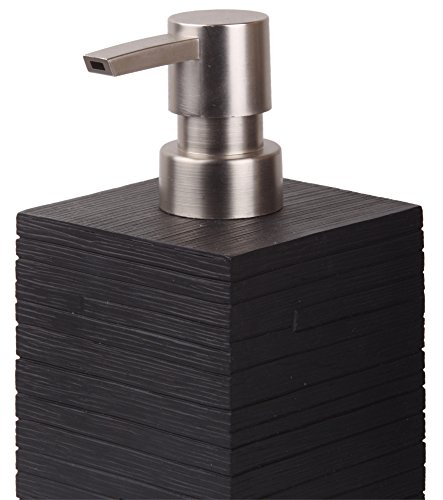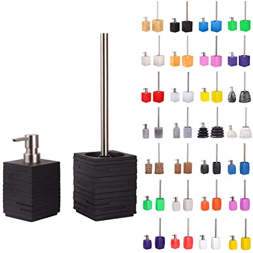 Sanilo Set di accessori per il bagno, dispenser di sapone e scopino WC, materiale di alta qualita, che attira l'attenzione in ogni bagno (Nero Calero Set)