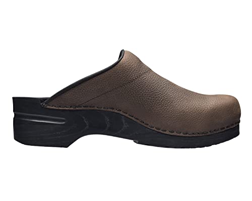 Sanita Karl | Zoccoli Aperti in Pelle Oliata da Uomo | Zoccoli Artigianali Originali in Pelle Flessibile | Plantare Anatomico in Schiuma Morbida | Marrone Antico | 46