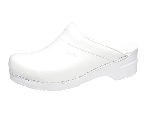 Sanita Karl PU | Zoccoli Aperti da Uomo | Zoccoli Artigianali Originali in Pelle Flessibile | Plantare Anatomico in Schiuma Morbida | Bianco | 40