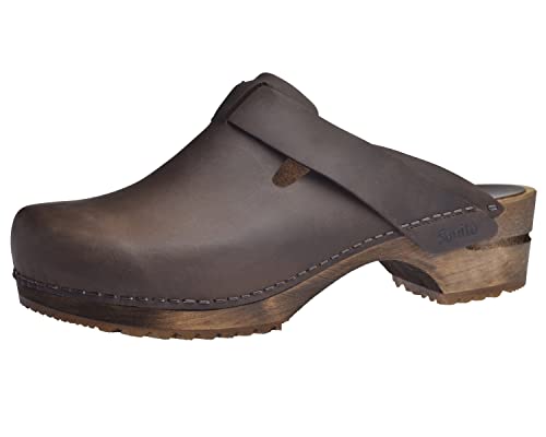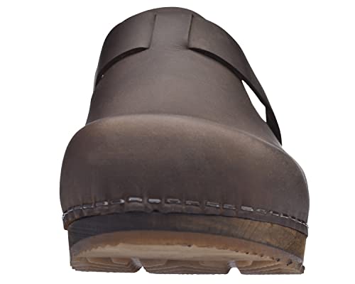 Sanita Karsten | Zoccoli Aperti da Uomo | Zoccoli Originali Fatti a Mano in Pelle Flessibile e Legno | Marrone | 45 EU