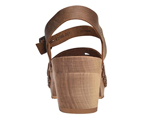 Sanita Silo | Sandali Originali Fatti a Mano | Calzature in Legno per Donna | Sandali con Cinturino alla Caviglia | Marrone | 38 EU