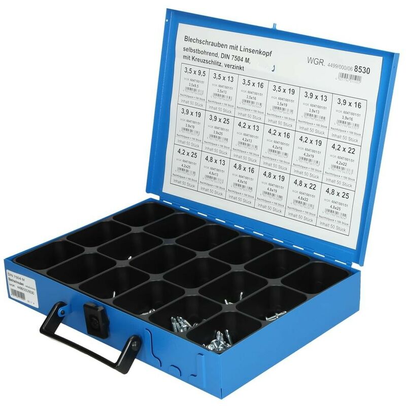 La scatola di assortimento in metallo da 900 pezzi con inserto rimovibile offre spazio per 18 diverse dimensioni della vite. le viti con una testa sporgente sono auto-tartalate, zincate e zelanti. grazie all'elenco delle forniture sulla copertura della scatola, la vite corrispondente è immediatamente a portata di mano. È un prodotto di qualità dresselhaus. Forniture: 50 x parcheggiatore a vite 3.5 x 9,5 50 x parcheggiatore a vite 3.5 x 13 50 x parcheggiatore a vite 3.5 x 16 50 x parcheggiatore 3,9 x 13 50 x parcheggiatore a vite 3,9 x 16 50 x parcheggiatore a vite 3,9 x 19 50 x parcheggiatore a vite 3,9 x 25 50 x parcheggiatore a vite 4,2 x 13 50 x viti Materiale: Piastra zincata Modello modello: Vis parker Anche: 806002035 (scatola di assortimento di viti metalliche 18 tipi. 1600 p. totale) Dimensioni: 330 x 230 x 50 mm Tipo: Scatola di metallo ordinato Contenuto: 900 pezzi EAN: 4001796015922 DIN / ISO: 7504