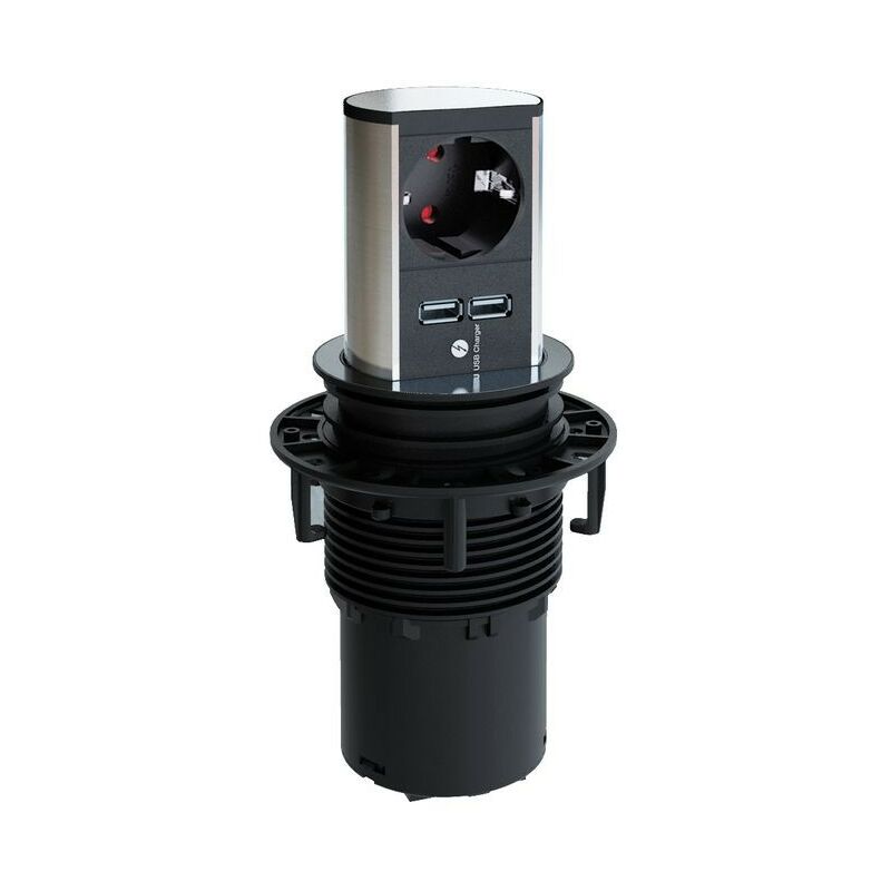 La torre di ascensore multiprises in versione desktop. Con un diametro di 79 mm, il modello dell'ascensore è perfettamente adatto all'integrazione delle connessioni correnti e dei dati negli spazi più piccoli. la torre di ascensori multiprises si distribuisce e si allontana da un semplice dito. Il design è discreto, i materiali di alta qualità. Caratteristiche tecniche: 1 x presa di sicurezza con protezione bambini in nero1 x caricatore doppio usb (5,2V / 2,15A) Facile e a carica rapida possibile per piani di lavoro da 16 a 60 mm di alluminio e spazzolato (aspetto ox) Cavo di design classico: 2 mlived con connettore di contatto protettivo