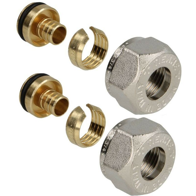 15 x 2.5 connettore di bloccaggio per tubo di assemblaggio multistrato per collegamento a filetti maschili F 3/4" di valvole e eurocone, ottone nichelato. Unità di imballaggio: 2 pezzi