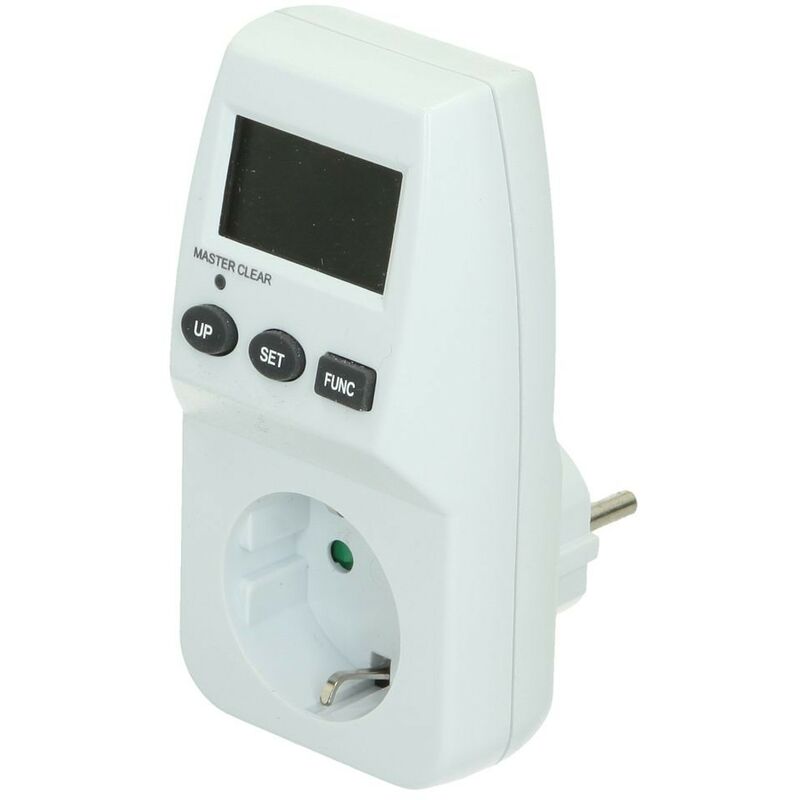 Il contatore di energia consente di rilevare gli alimenti in energia e quindi risparmiare denaro. Il display digitale mostra il consumo energetico totale in kW/h, il consumo energetico attuale in watt e il massimo consumo energetico in watt. Inoltre, il misuratore ha una funzione per calcolare i costi energetici del vostro tasso di energia individuale e una batteria integrata attraverso la quale è possibile leggere i valori misurati indipendentemente dal settore corrente. La potenza effettiva varia da 4 w a 3600 w. Colore: Bianco Codice paese: D, A, L, NL Tensione [V]: 250 V