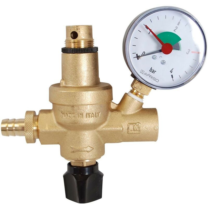 La valvola di riempimento viene utilizzata per un facile riempimento di un sistema di riscaldamento chiuso. il manometro integrato permette di controllare la pressione del sistema già dopo il riempimento. La valvola è dotata anche di un riduttore di pressione, di una valvola di arresto e di una valvola antiriflesso. Anche: 512251240 (armadio di riempimento 1⁄2'. con manometro) . 512242312 (fa valvola di riempimento afriso) Connessione: 1/2" Pressione a valle: 0,5 - 3 barre EAN: 4016203424068 Pressione di servizio max. [bar]: 10 DIN / ISO: IN 12828