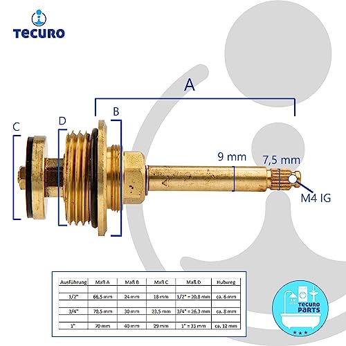 Dimensioni per 1/2 pollici: 66,5 mm x 24 mm x 18 mm x 20,8 mm (A/B/C/D)//materiale: ottone Blank