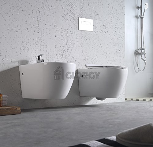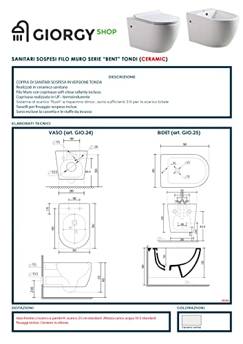 Sanitari wc vaso bidet coprivaso terra o sospesi soft-close bagno serie completa tonda (wc + coprivaso + bidet, versione sospesa)
