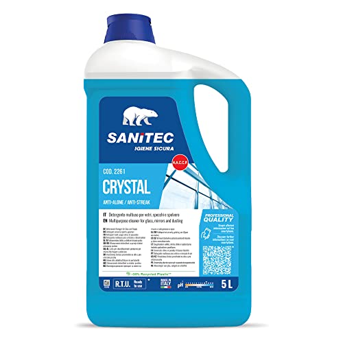 Sanitec, Crystal Anti Alone, Detergente Multiuso Profumato, Soluzione Ideale per Detergere e Rendere Brillanti Vetri e Specchi e superfici Senza Lasciare Aloni, 100% Made in Italy, Tanica da 5 Litri