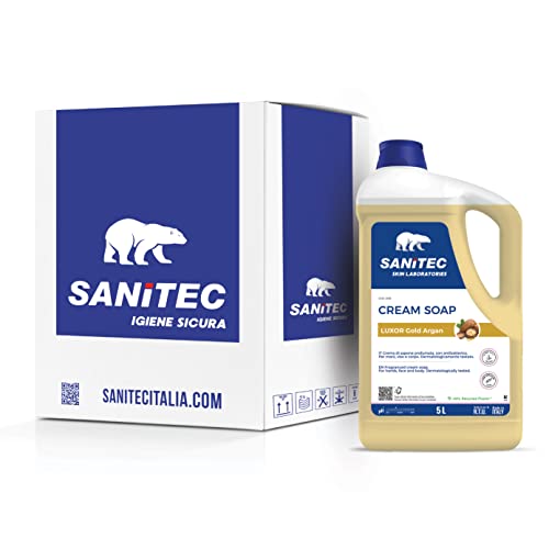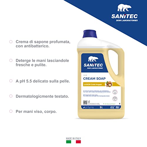 SANITEC igiene sicura Luxor Gold Argan, Crema Sapone Profumata Idratante con Glicerina e Antibatterico, Deterge le Mani Lasciandole Pulite, pH 5,5, Dermatologicamente Testato, 2 Confezioni da 5 L