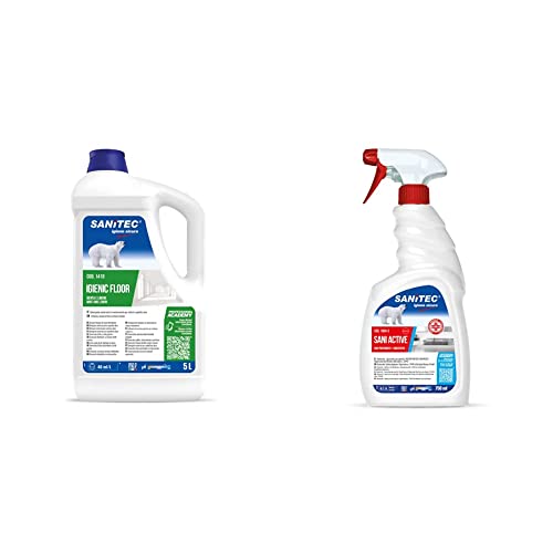 Sanitec Igienic Floor, Detergente Pavimenti, Foglie di Menta e Limone, 5 L & SANITEC Disinfettante Sgrassatore Sani Active 750ml