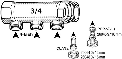 Sanitop-Wingenroth Wiroflex, Ultra-Compatto distributore per sanitari e impianti di riscaldamento, Stamm tubo 3/4 pollici, 1 pezzi, 26054 1