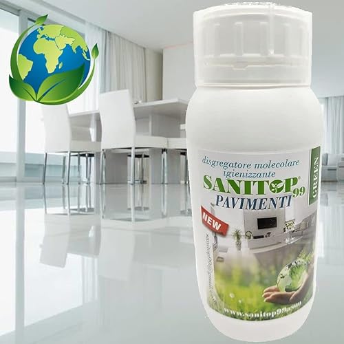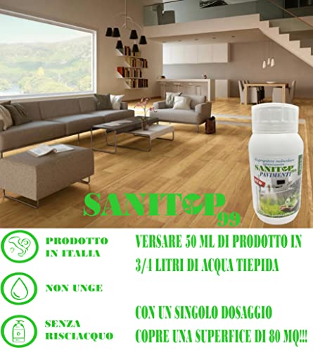 SANITOP99 Detergente Igienizzante Pavimenti - Concentrato - Ecologico - Parquet, Cotto, Ceramica, Marmo, PVC, Gres Porcellanato - 10 Lavaggi - 500 ml