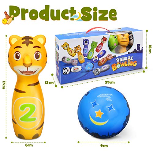 Giocattoli educativi: il set da bowling può mantenere i tuoi piccoli concentrati, i birilli presentano numeri e gli animali sono ottimi per i bambini che esplorano gli animali e contano.