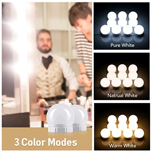 SANLION Luci per specchio cosmetico, luci per specchio Hollywood, luci per specchio da toletta, cavo USB con 10 lampadine dimmerabili, 3 modalità di colore, 10 luminosità
